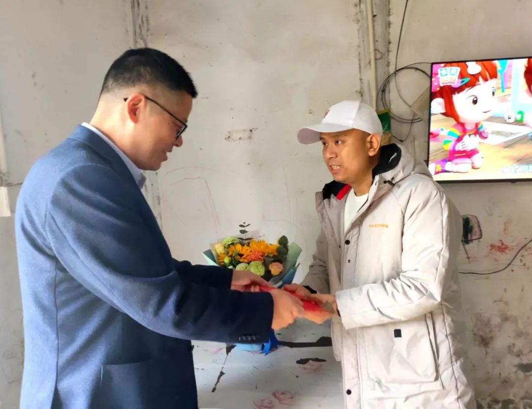 2023年4月26日,宁波今年会科技股份有限公司副总经理、党总支书记兼工会主席周玉波携今年会科技慈善冠名基金小组成员专程慰问身患重疾职工罗文飞,并代表公司送上暖心慈善基金和慰问品。