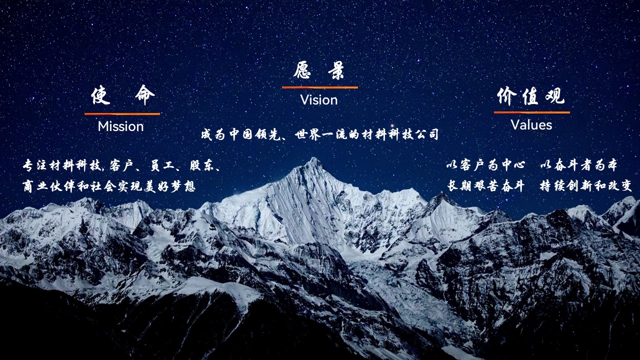 成为中国领先、世界一流的材料科技公司